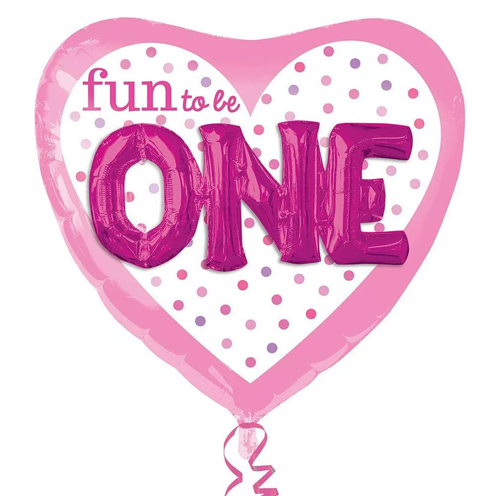 3D Hatású Első Születésnapi Szív Alakú Pink Héliumos Fólia Lufi, 91 cm