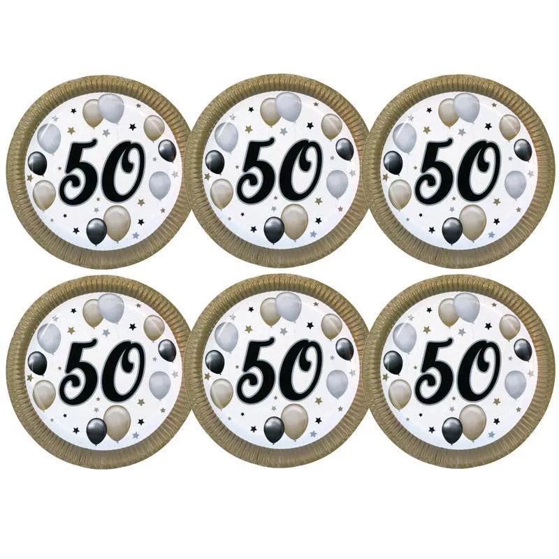 50-es Számos Szülinapi Elegáns Léggömbös Parti Papír Tányér, 23 cm-es, 6 db-os