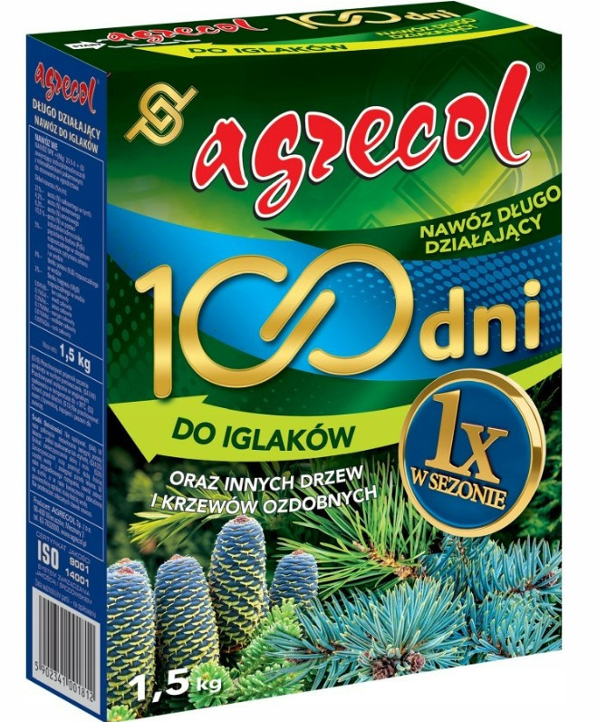 Az örökzöldek 100 napos műtrágyája granulátum formájú műtrágya, gyors és hosszan tartó hatású makro- és mikroelemekkel. Tűlevelűek és más örökzöld fák és cserjék trágyázására tervezték. Lombhullató dísznövényekre is ajánlott. A műtrágya kiválóan alkalmas a gyakran vágott sövényekhez is, mivel lehetővé teszi számukra a gyors regenerálódást. A fokozatosan felszabaduló tápanyagok csökkentik a túltápozás kockázatát.