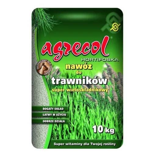 Az "Agrecol - általános gyeptrágya" a prémium minőségű, komplex, több vegyületből álló granulátum, amely pázsit trágyázására valamint gyeptelepítésre szolgál. A megfelelően kiválasztott összetevők: nitrogén, foszfor, kálium, magnézium és nyomelemek megfelelnek a fű tápanyagszükségletének, támogatva azok optimális növekedését, lédús zöld színét, széles körű elterjedésétés, kiváló állapotát. A gondosan összeállított műtrágya összetétele lehetővé teszi, hogy használatával gyorsan hosszú távú eredményeket kapjon. Használata kényelmes, biztonságos a környezet számára.