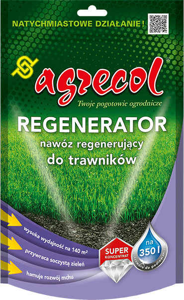 A regenerátor különösen ajánlott szárazság, betegségek, moha és gyomok eltávolítása miatt legyengült gyep számára. Kiválóan alkalmas a gyepszellőztetés után, amikor gyors regenerációra van szükség. A gyepfelújítóra jellemző vasvegyületek hozzájárulnak a moha növekedésének gátlásához. A nitrogénnel táplált fű gyorsan bokrosodik és benövi az üres területeket. Az erős fű jól tűri a gyakori nyírást és könnyedén kiszorítja a gyomokat. A trágya gyorsan pótolja a nitrogén, magnézium és vas hiányát, amelyek részt vesznek a klorofill szintézisében és felépítésében – ez a zöld pigment. Ezen elemek hiánya a fű sárgulásának leggyakoribb oka. A regenerátor rendszeres használatával a legyengült gyep visszanyeri vonzó megjelenését és egészségét.