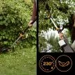 • Hosszú kialakítás, nagy kinyúlás - Állítható nyélhossz: 1,3–1,8 m, akár 3,4 m-es munkamagasság, a dönthető vágófej (230°) és a 360°-ban forgó nyél biztosítja a precíz vágást minden pozícióból.