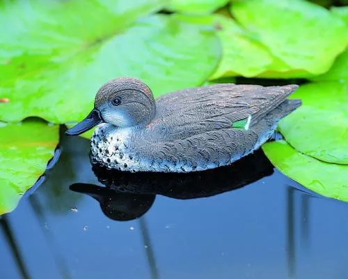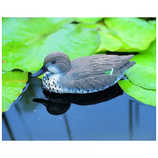 Élethű állatfigura időjárásálló, UV álló műanyagból. Tavi dekorációnak vagy kerti dísznek kiválóan alkalmas. A Hím réce és néhány kiskacsa segítségével egy egész kacsa-família települ a kerti tóba. A nőstény réce 30 cm hosszú.