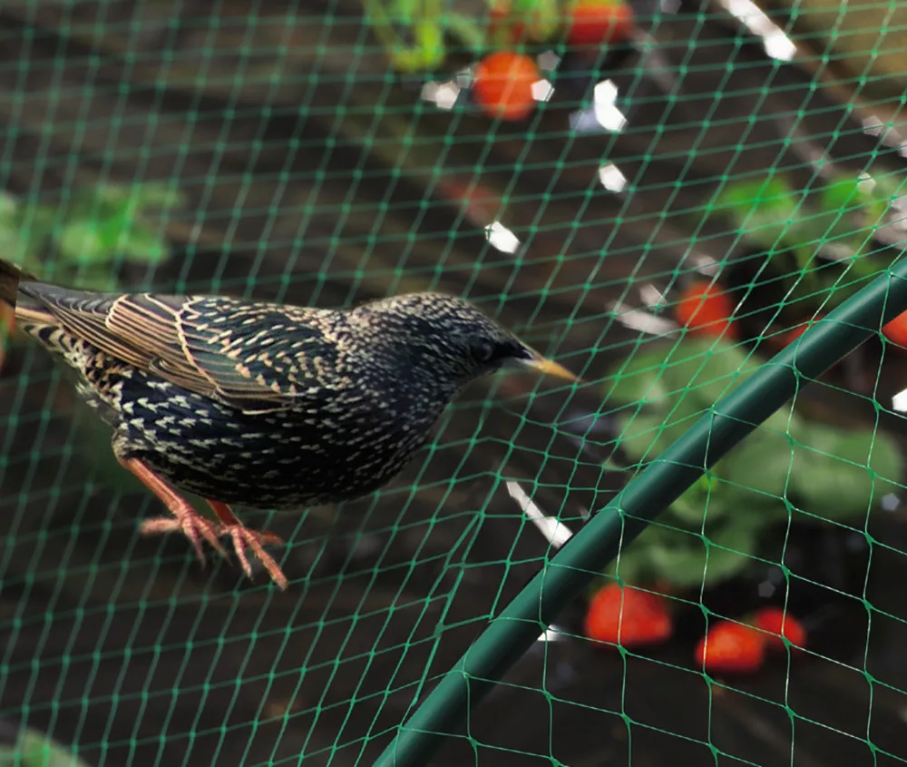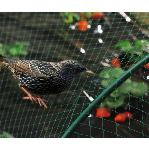 Rombusz szemformájú extrudált műanyag háló. Védje gyümölcseit fái lombkoronáján vagy zöldségágyásait ezzel a madárhálóval.