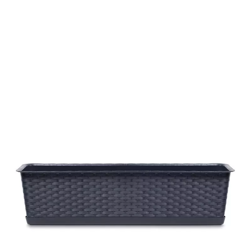 Dekoratív, fonott mintájú balkonláda, alátéttel, mely rendkívül jól mutat szinte minden stílusú teraszon, balkonon, erkélyen. Ültessen bele fűszernövényeket vagy csüngő balkonvirágokat. Mérete:(Hosszúság x Szélesség x Magasság) 17,3 x 48,9 x 15 cm