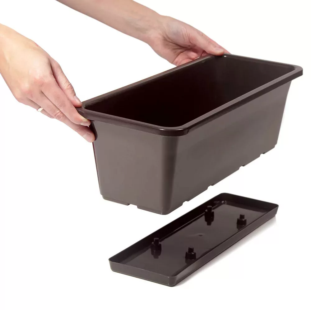 Egyszerű, letisztult vonalvezetésű balkonláda, mely szinte minden stílusú környezettel jól harmonizál. Tartós műanyagből készül, mely ellenáll az időjárás viszontagságainak. Remekül használható különböző típusú balkonnövények, fűszernövények ültetésére is. Mérete:(Hosszúság x Szélesség x Magasság) 17 x 59,5 x 14,3 cm
