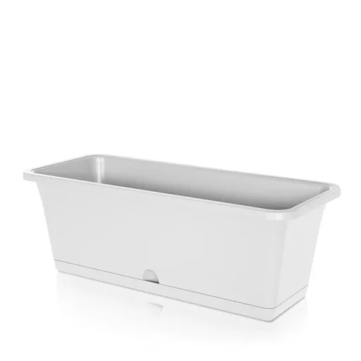 Egyszerű, letisztult vonalvezetésű balkonláda, mely szinte minden stílusú környezettel jól harmonizál. Tartós műanyagből készül, mely ellenáll az időjárás viszontagságainak. Remekül használható különböző típusú balkonnövények, fűszernövények ültetésére is. Mérete:(Hosszúság x Szélesség x Magasság) 17 x 59,5 x 14,3 cm