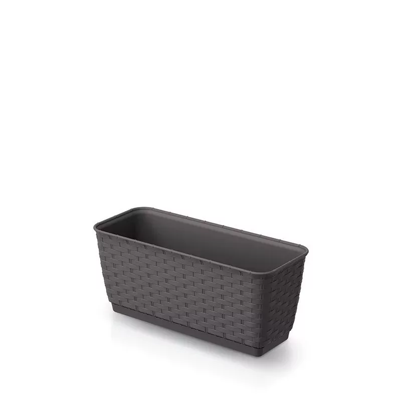 Dekoratív, fonott mintájú balkonláda, alátéttel, mely rendkívül jól mutat szinte minden stílusú teraszon, balkonon, erkélyen. Ültessen bele fűszernövényeket vagy csüngő balkonvirágokat. Mérete:(Hosszúság x Szélesség x Magasság) 59 x 15,4 x 14,2 cm