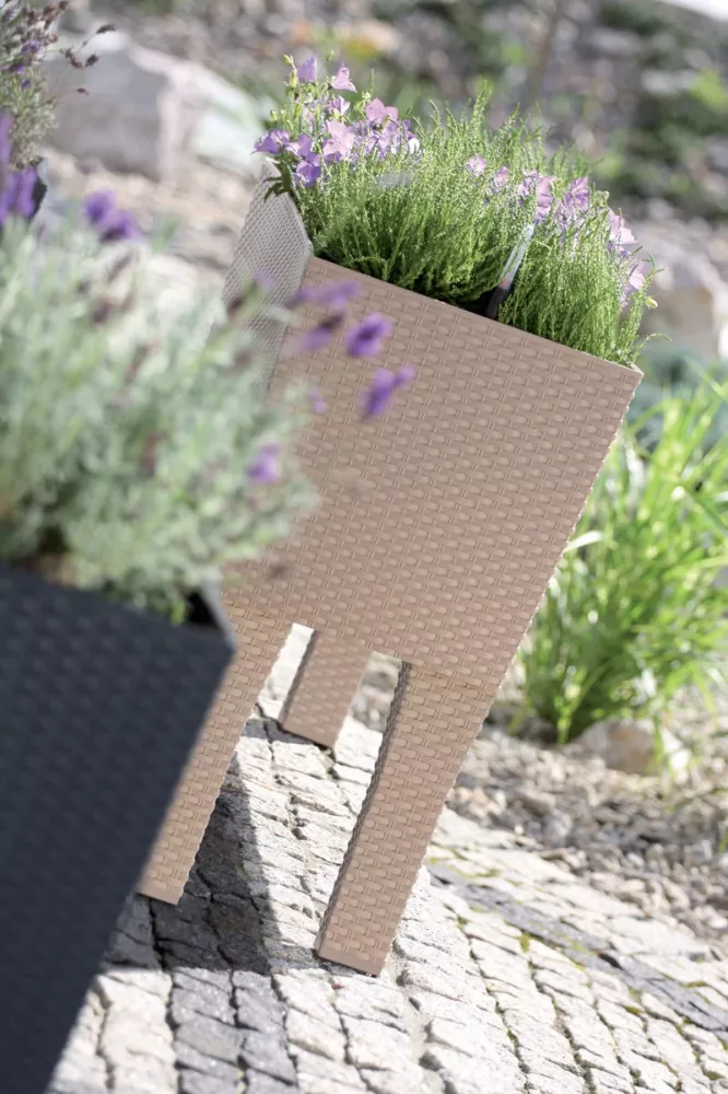 A stabil lábakon álló Rato Case High Can láda kitűnően mutat a teraszokon és balkonokon. A készletben öntöző rendszer is található. Mérete:(Hosszúság x Szélesség x Magasság) 33 x 80 x 62 cm