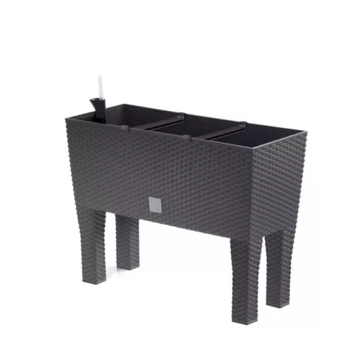 A stabil lábakon álló Rato Case High Can láda kitűnően mutat a teraszokon és balkonokon. A készletben öntöző rendszer is található. Mérete:(Hosszúság x Szélesség x Magasság) 33 x 80 x 62 cm