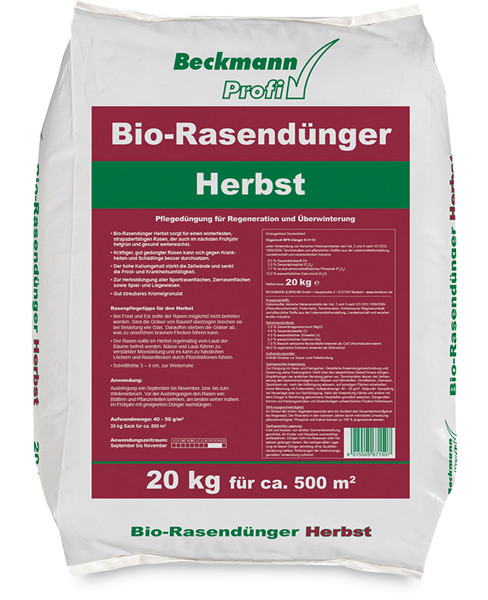 Alkalmazás szeptembertől novemberig, vagy a tél beálltáig. Trágyázás előtt távolítsa el a leveleket és a növényi részeket a gyepről, lehetőleg a biogyeptrágya kijuttatása előtt végezzen fűnyírást. Tavasszal trágyázzon újra Beckmann gyeptrágyával.