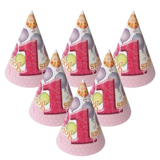 Rendezz vidám és emlékezetes szülinapi party-t kislányodnak az első születésnapjára. A fontos, hogy ő érezze jól magát és érezze, hogy mindenki szereti őt. A vidám hangulatot egy rózsaszíni első szülinapi papírcsákó biztosan meghozza. Színes léggömbös első szülinapos parti kalap kislányoknak. Mérete: 11 cm x 15 cm. Anyaga: papír. 6 db kalap/csomag.
