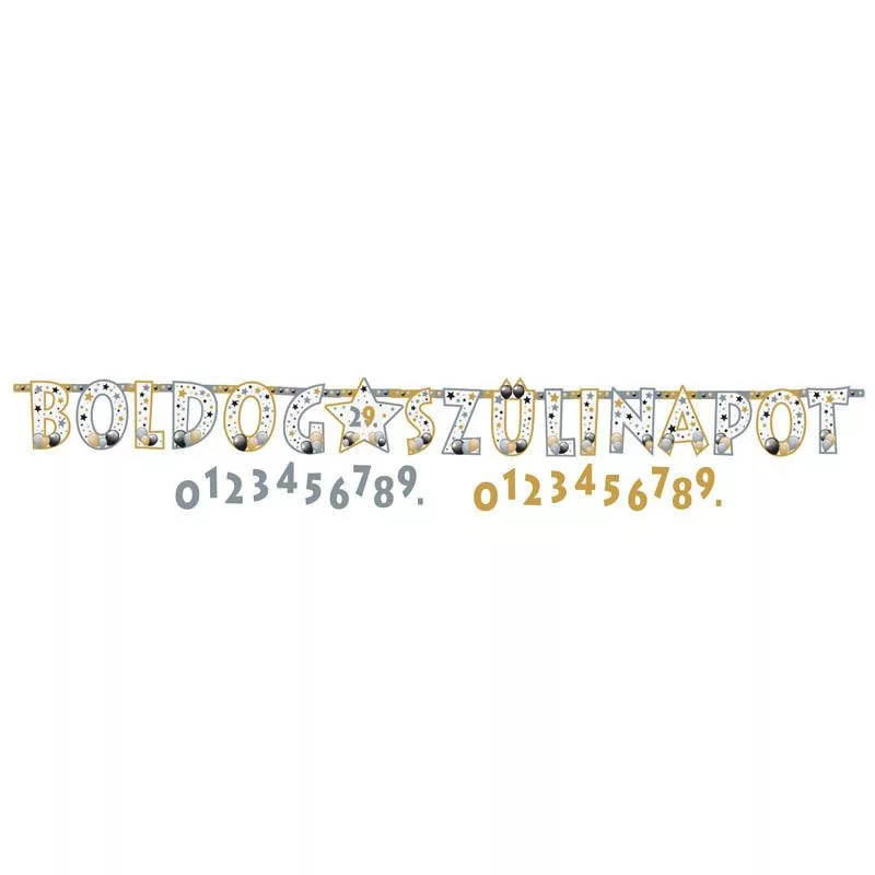 Boldog Szülinapot! Elegáns Léggömbös Számozható Betűfüzér - 2,4 m