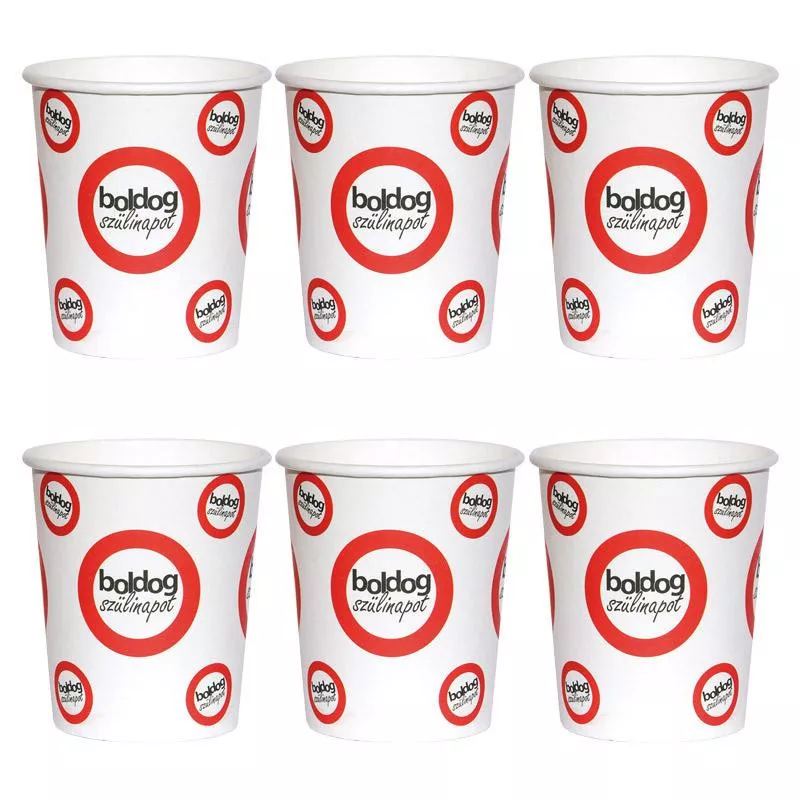 Végre eljött a Te napod! Szülinapi partira tökéletes választás ez a Boldog Szülinapot feliratos parti pohár. Szülinapja mindenkinek van! Ez az a nap, ami csakis rólad kell szóljon. Ezen a napon, meg kell ünnepelned magad, akár baráti társaságban, vagy családi körben, hiszen eme csodás nap csakis a tied. Ünnepeld akár 15.-ket vagy 150.-ket ezek a poharak nagyszerűen helyt állnak majd a partin. A szülinapodon még a poharak is felköszöntenek, hiszen a poharakon lévő felirat - boldog szülinapot - csakis neked szól. Nagyszerű megjelenésű feliratával, és a poharak fehér színével, biztos elnyerik mindenki tetszését. Kortól és nemtől függetlenül beleillenek bárkinek a szülinapi partijába. A pohár anyaga papír, de rendkívül jól bírja a nedvességet, 6 darabos kiszerelése optimális mennyiség lehet a partin. Sőt a pohár papír anyagának köszönhetően a parti végén még mosogatni sem kell. Sőt sokkal biztonságosabb is annál, mintsem hogy az otthonunkban található üvegpoharakat használnánk. A poharak méretüket tekintve: 250 ml, anyaguk: papír.