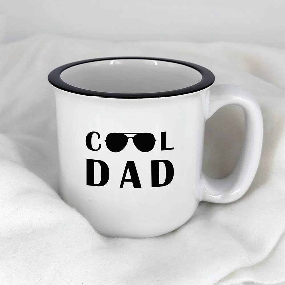 A „Cool Dad” bögre azoknak az apukáknak készült, akiknemcsak szuperek, de stílusosak is. Fehér, fekete peremű kerámia bögre, moderntipográfiával és ikonikus napszemüveg grafikával.Tökéletes reggeli kávéhoz, otthon vagy az irodában.Remek ajándék apák napjára, születésnapra, vagy bármilyen alkalomra, amikormosolyt szeretnél csalni apa arcára.