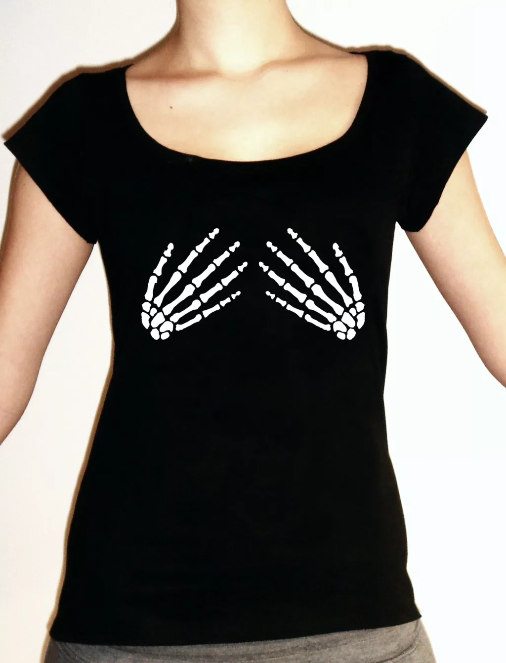 Csontváz kezes halloweenis póló női M