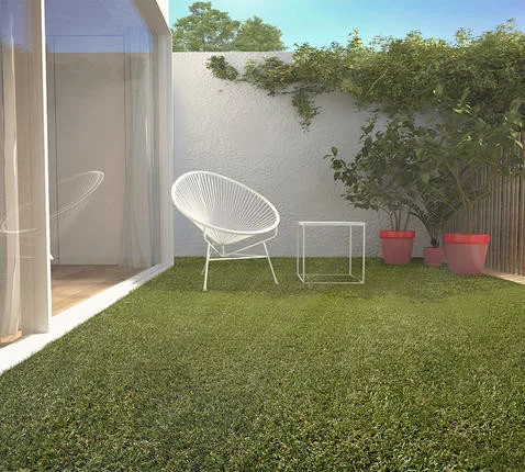 Rendkívül dekoratív UV-kezelt, színtartó, strapabíró, csúszásmentes műfű. A műfű perforált alapjatöbbféle alapra tehető, jó vízelvezetést biztosít. A szálak színösszetételének köszönhetően természetes hatást kelt. Kertépítéshez, teraszra, erkélyre ideális, mert könnyen takarítható, nem kell locsolni, vágni, gyomirtózni.