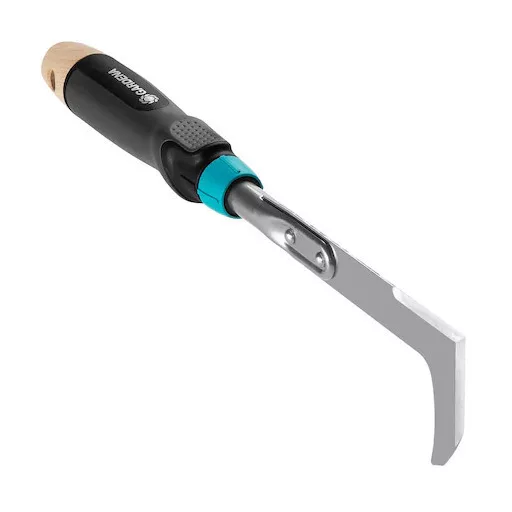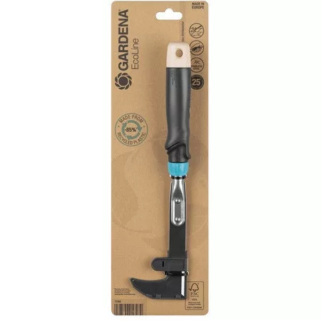 Csomagolási forma: 100%-ban újrahasznosított és újrahasznosítható kartonból készült termékkártya Műanyag elemek: Legalánn 85% újrahasznosított műanyagból készült Fém elemek: Legalább 15% újrahasznosított fémből készült Alkalmazás : Fű, moha, gyomok eltávolítására fugákból, járólapokon és falakon Tulajdonságok: Ergonomikusan kialakított markolat Markolat puha elemekkel Mindkét oldalon élezett, edzett, kiváló minőségű rozsdamentes acél kés Minőségi késvédő FSC 100% európai bükkfa
