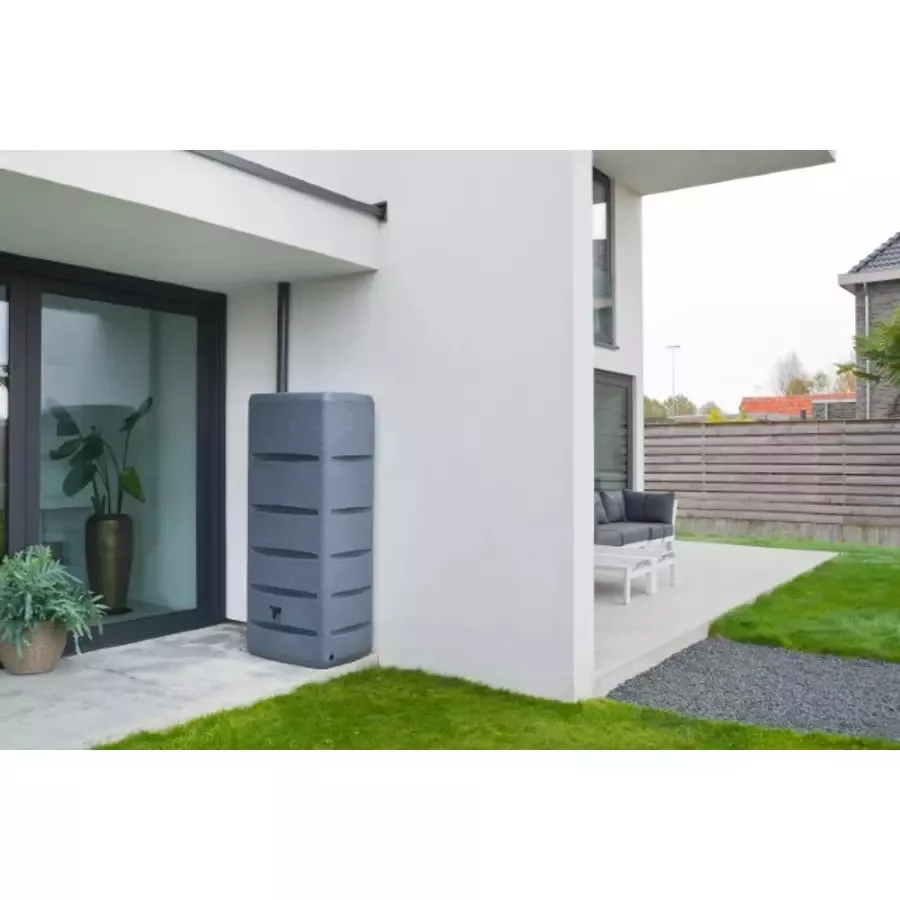 Strukturált felületű esővízgyűjtő tartály amely tökéletesen illeszkedik a modern építészeti környezetbe, miközben 720 literes kapacitásával hatékonyan gyűjti és tárolja az esővizet. A tartály kiváló minőségű, UV-álló műanyagból készül, amely ellenáll az időjárás viszontagságainak. Csappal felszerelve.