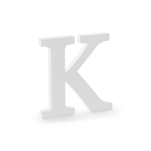 A K betű fehér fából készült, szélessége kb. 19,5 cm, magassága kb. 20 cm