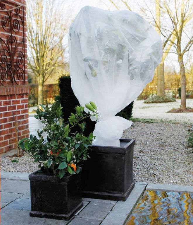 Fagyvédő takarófólia UV álló anyagból a fagyérzékeny növények fagymentes teleltetéséhez, a fagykár megelőzésére.