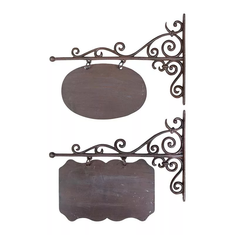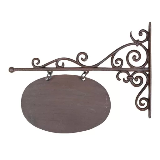 Klasszikus, viktoriánus stílusú öntöttvas cégér, amelyre krétával, festékkel vagy matricával egyedi feliratot készíthetünk. Stílusosan mutat saját otthonunk ajtajánál vagy az udvaron, de különböző üzletek főbejáratához is tökéletesen illik. A termék felszerelése egyszerű, ovális alakban, antik barna színben kapható. Rusztikus hangulatot áraszt, egy kedves felirattal mosolyt csalhatunk vendégeink vagy vásárlóink arcára. Öntöttvas jellegéből adódóan külső elhelyezés esetén, a korrózió megjelenésével egy patinásabb, rusztikusabb termék válik belőle. Tedd vele hangulatossá otthonodat vagy üzletedet!TIPP: A felszereléshez szükséged lesz az ehhez megfelelő kiképzésű csavarra is. A termék a csavart nem tartalmazza.