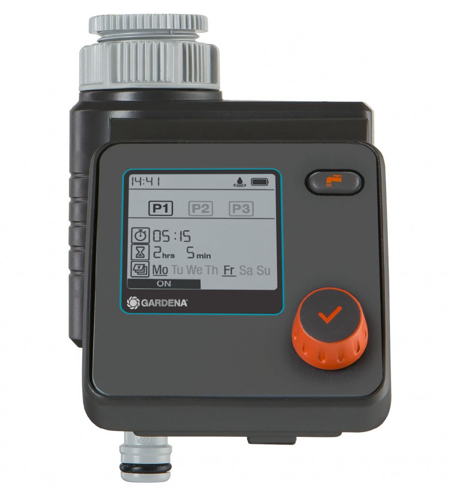 Rugalmas és automatikus kertöntözés A GARDENA Öntözőkomputer Select használatával, az öntözést rugalmasan és egyéni igények szerint tervezheted meg. Akár három különböző, egymástól független öntözést is beállíthatsz. Az egység elemmel üzemel és közvetlenül a csapra csatlakozik; működése egyszerű, mindössze egyetlen forgó- és nyomókapcsolóval kiválaszthatók és megerősíthetők az adatok. A könnyen olvasható LC kijelzőn minden beállítás egyidőben látható. Az időjárásálló programozóegység eltávolítható. A Select öntözésvezérlő a GARDENA talajnedvesség-érzékelővel kombinálható. Automata és időtakarékos öntözés A GARDENA Öntözőkomputer segítségével a kertet megbízhatóan és kényelmesen öntözheted - még akkor is, ha nem vagy otthon. Több szabadidőd marad, mégis buja zöld gyeped és gyönyörű, egészséges növényeid lehetnek. Ha az automatikus öntözőrendszer a kora reggeli órákban vagy az esti órákban indul el, kevesebb víz párolog. Ez pénzt takarít meg és célzott, optimalizált öntözést biztosít. Egyszerű használat Az öntözőkomputer beállításai egyszerűen kezelhetők a forgó gomb segítségével, az adatok kiválasztásához és elfogadásához. Egy könnyen olvasható LC kijelzőn minden beállítás egy időben látható. Az időjárásálló programozó egység eltávolítható a beállítások végrehajtásához. Az opcionális billentyűzárnak köszönhetően a beállítások véletlen átállítása megakadályozható. Rugalmas öntözés napi 3 időzítéssel Az öntözőrendszerhez három különböző és független ütemezés hozható létre. Az öntözés kezdete, időtartama és napjai programozhatók. Nagyon rugalmas terveket lehet beállítani az egyéni kívánalmak szerint. A profi kertészek például ezt a lehetőséget használják elő-öntözésre, amely előkészíti a talajt és a gyökereket a későbbi fő öntözéshez. Ez javítja a víz felszívódását és a növény növekedését. "Vizet, most" funkció Ha az öntözést azonnal el kell indítani, manuálisan is aktiválható anélkül, hogy eltávolítanánk az egységet a csapról vagy megváltoztatnánk a beállításokat. "Biztonsági leállítás" technológia Az öntözőkomputer mindig megbízhatóan működik a "Safe Stop" technológiának köszönhetően. Ha az elem energia szintje túl alacsony az öntözési folyamat teljes ellenőrzéséhez, akkor a folyamat nem indul el. A piros LED is időben figyelmeztet, ha az elemet cserélni kell. Víztakarékos öntözés A GARDENA Talajnedvesség-érzékelő csatlakoztatásakor az automatikus öntözés nem aktiválódik, míg a talajnedvesség megfelelő. Ez lehetővé teszi a növények jobb vízellátását, valamint a víztakarékos öntözést. Gyakoriság: szabadon beállítható akár napi 3 öntözés lehetséges Időtartam: 1perc- 180perc között Levehető kezelő felületnek köszönhetően könnyen programozható. 1db 9V-os alkáli elemmel az üzemidő kb. 1év. Jelzi a gyenge elemet. Csatlakoztatható 3/4"és 1"-os vízcsapra. Üzemi nyomás : 0,5bar-12bar.