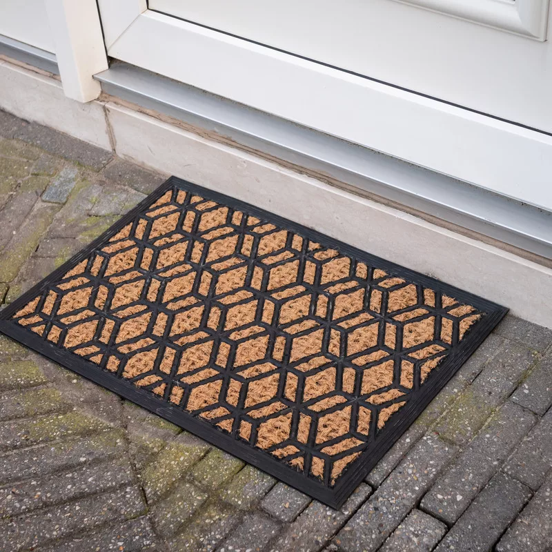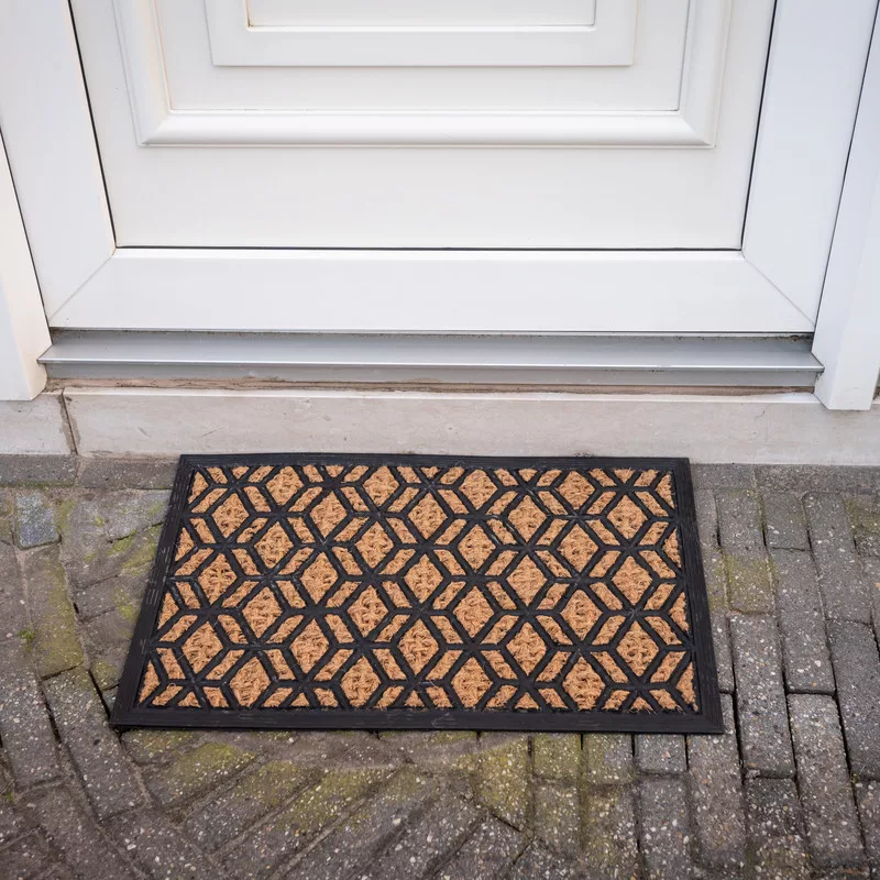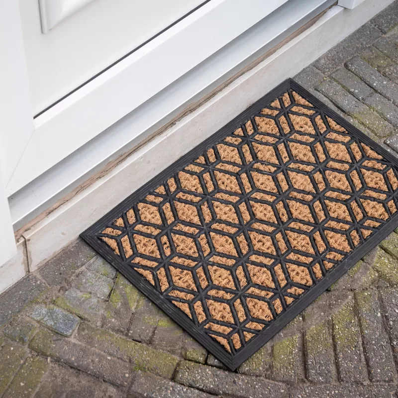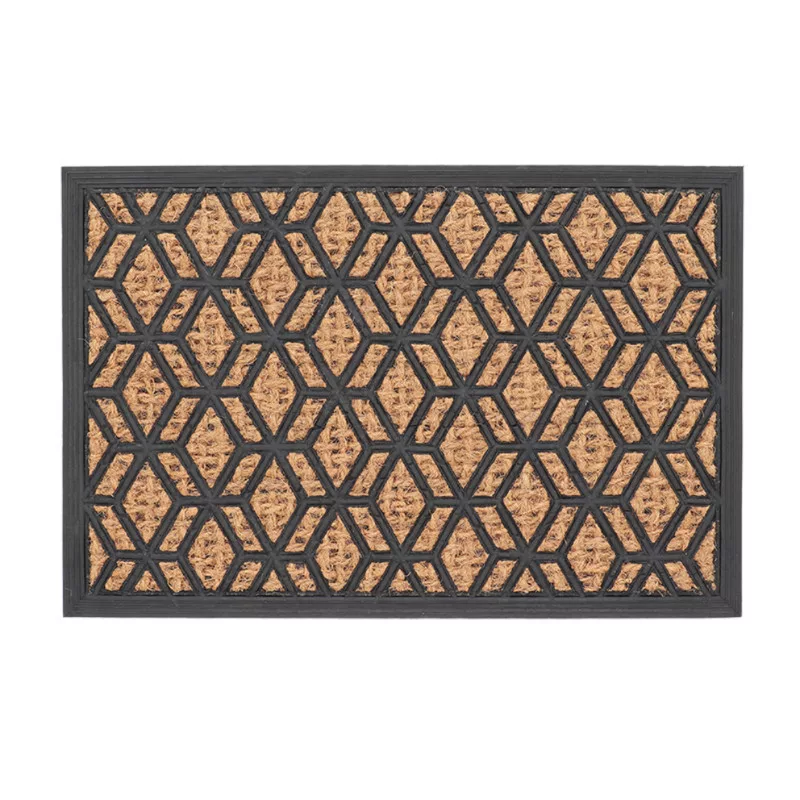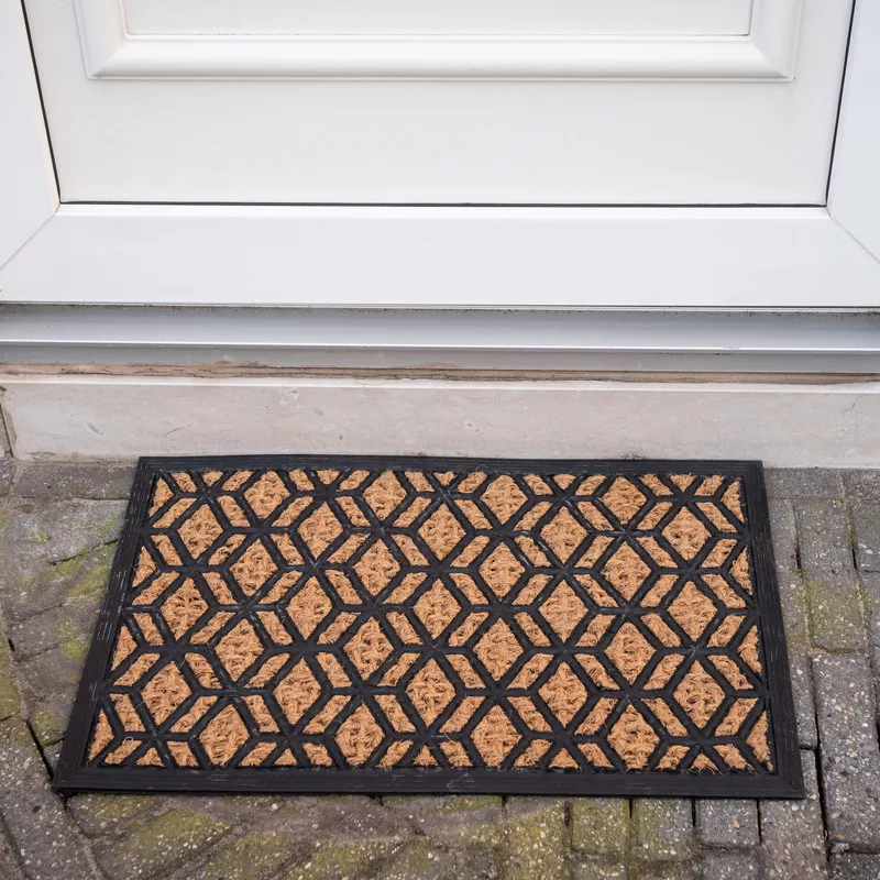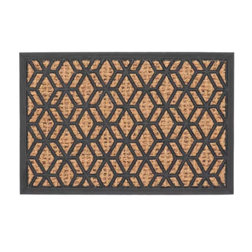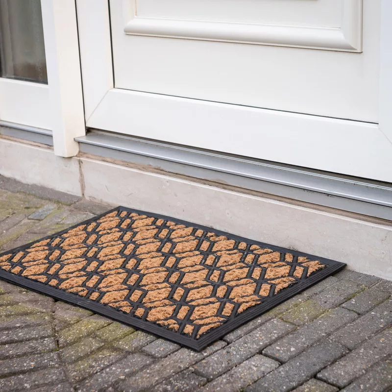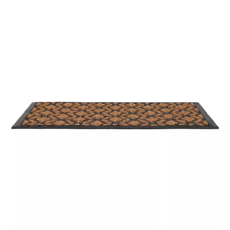 Gyémánt mintás gumi és kókuszrost lábtörlő. Ez a téglalap alakú lábtörlő beltéri és kültéri használatra egyaránt alkalmas. Gyémánt mintája minden otthon stílusához illeszkedik, és azonnal elvarázsolja a vendégek szívét. A robusztus és strapabíró kialakításának, valamint minőségi kókuszrost és gumi anyagok kombinációjának köszönhetően könnyedén eltávolítja a lábbeliről a makacs és durva szennyeződéseket. A gumi lábtörlő előnye, hogy nem csúszik el a helyéről.