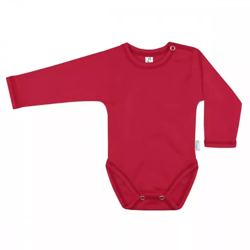 Ez a piros hosszú ujjú body rugalmas mérettartományban használható. A 86–92 méret totyogókra illik. Puha és meleg anyagú. Jól szellőzik. Patentjai könnyítik a használatot. Formastabil és tartós. Vidám megjelenést ad. Mindennapi használatra ideális.