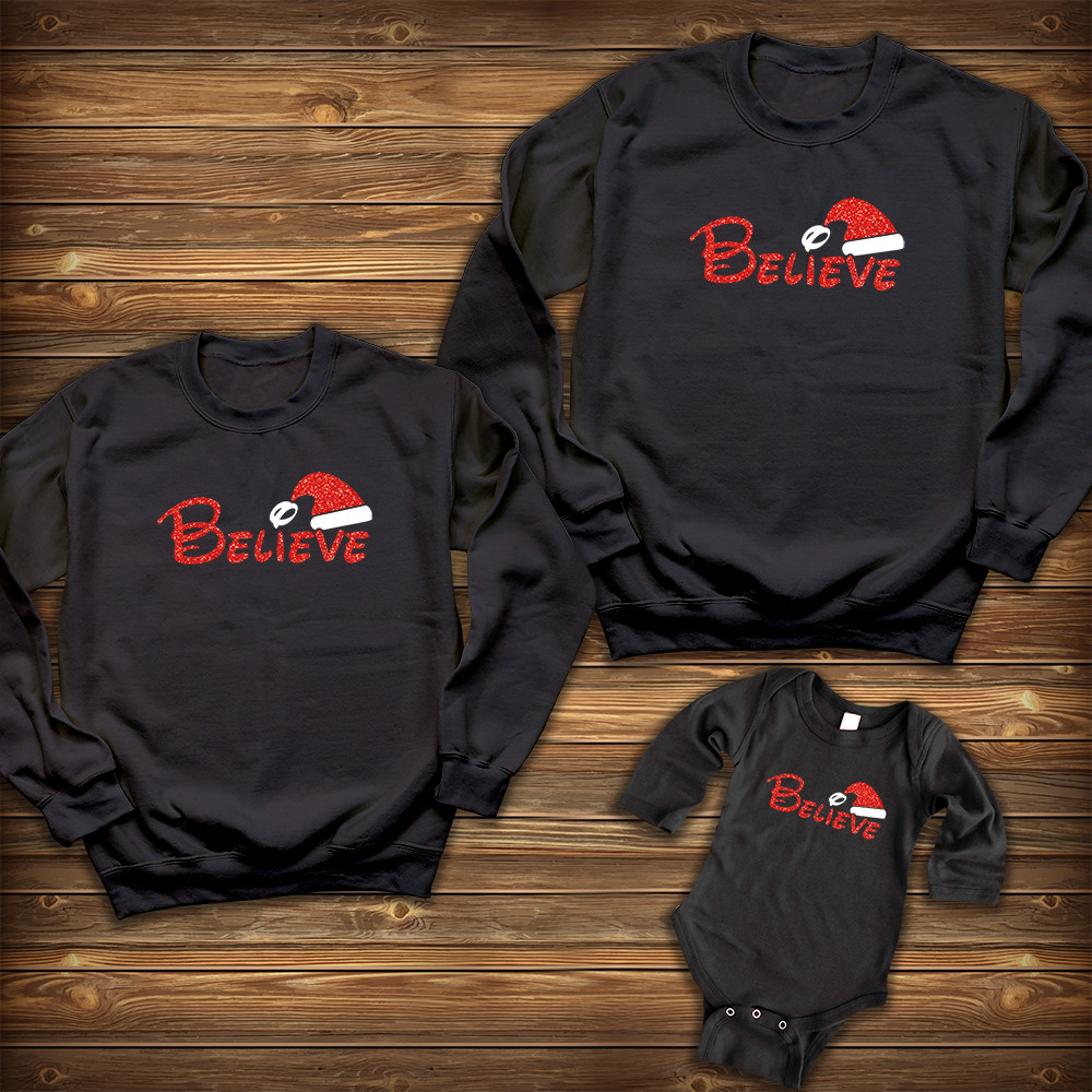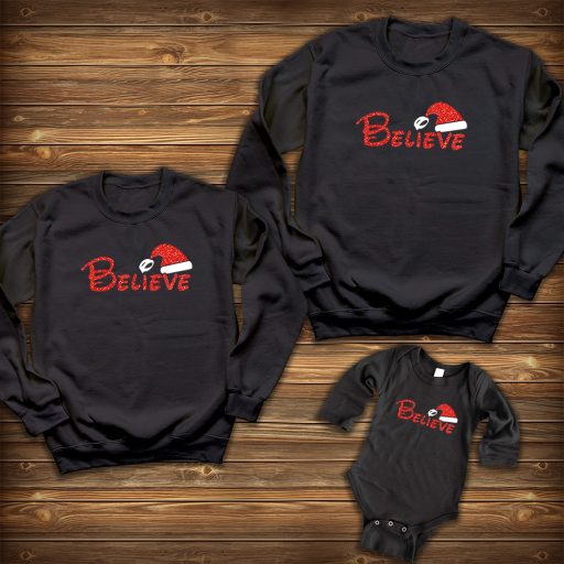 A „Believe” karácsonyi családi szett egy klasszikus ünnepiüzenetet közvetít: hidd a varázslatban! Fekete pulóverek fehér felirattal,piros mikulássapkával díszítve. Puha, kényelmes anyagból készült, melegen tartés jól mutat közös fotókon. Rendelés előtt ellenőrizd a mérettáblázatot. Havalamelyik méret nem elérhető, írj a webshop@sateam.hu-ra.
