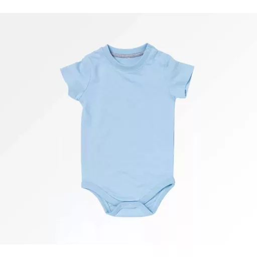 Ez a Kariban K381 világoskék rövid ujjú bababody 6 hónapos babáknak készült. A puha anyag kényelmes viseletet ad. A rövid ujj jó választás melegebb napokra. A patentos kialakítás gyors öltöztetést tesz lehetővé. A világoskék árnyalat barátságos és vidám. A szabás jól igazodik a baba mozgásához. Az anyag formáját és színét hosszú távon megőrzi. Biztonságos, bőrbarát viselet. Ideális otthoni használatra vagy bölcsibe.