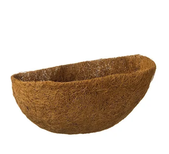 Előre kialakított kókuszbélés falra rögzíthető félkör íves kovácsoltvas kosárhoz. Mérete: 60 x 20 cm