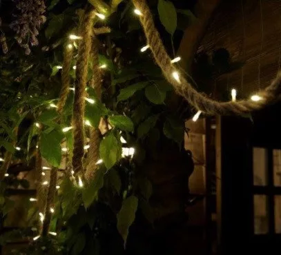 Kötélre fűzött fényfűzér, 100 LED, 3 méter, A kötélre fűzött fényfüzér 4,5 V -os transzformátor segítségével működik.