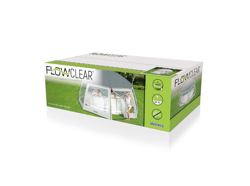 A Lay-Z-Spa medencesátor kompatibilis a felfújható jakuzzik és 488 cm átmérőjű medencékkel. A kupola formájú medence sátor biztonságot és védelmet nyújt az eső és a nap vellen.