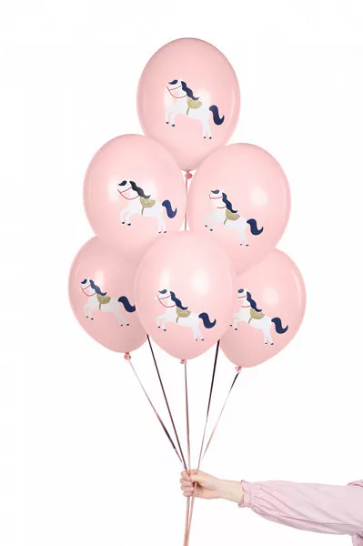Léggömb, 30 cm, ló mintával, pasztell halvány rózsaszínű (50 db)