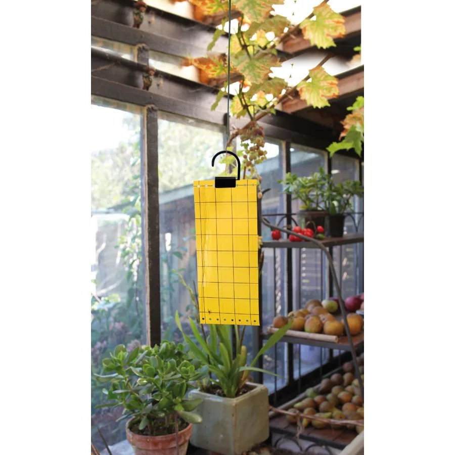 Sárga, kétoldalas lap muslicák és liszteskék ellen. Öntözés esetén sem veszít a hatékonyságából. Ahogy fejlődnek a kúszónövények (paradicsom típusúak) javasolt több lapot is felakasztani. Méret: 24 cm - 10 cm - 5 x