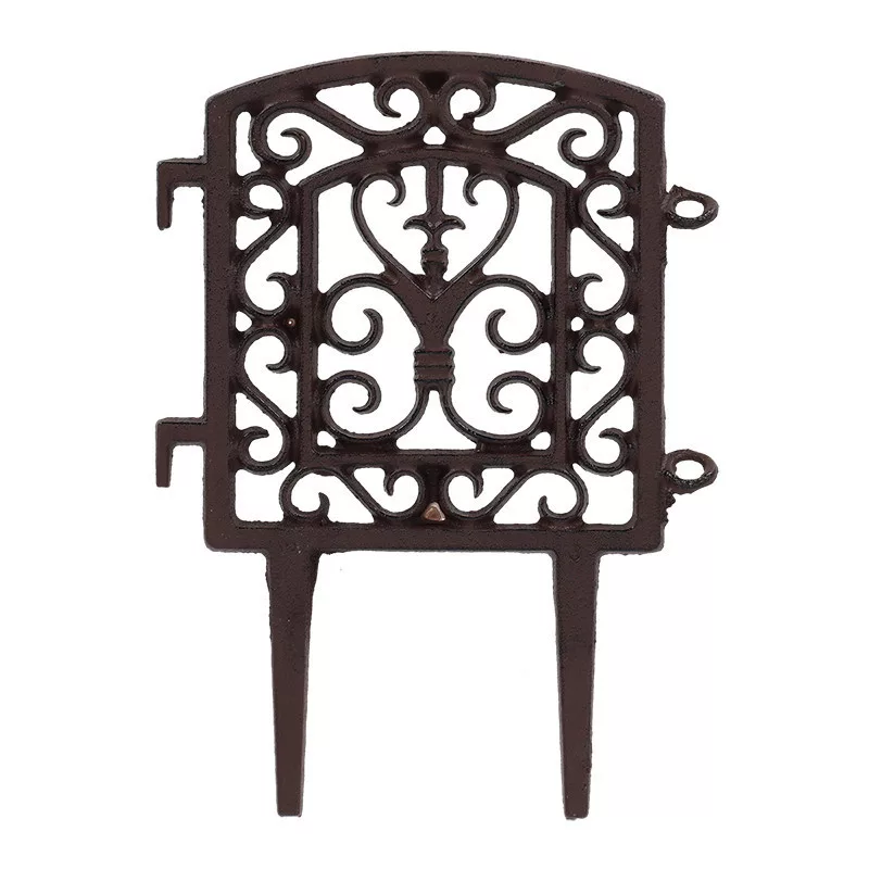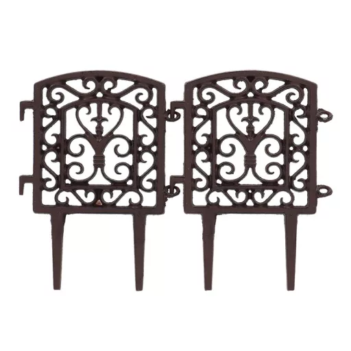 Öntöttvas ágyásszegély klasszikus mintával, amely kerti kerítésként is használható és ágyások szétválasztására is alkalmas. Masszív anyaga miatt a fa,- és egyéb ágyásszegélyekkel szemben sokkal időtállóbb. Látványos, könnyen leszúrható és egyszerűen áthelyezhető kerti dekoráció. Rusztikus hangulatot csempészhetünk vele otthonunkba. Öntöttvas jellegéből adódóan külső elhelyezés esetén, a korrózió megjelenésével egy patinásabb, rusztikusabb termék válik belőle. Az ár és a méret 1 darabra vonatkozik.
