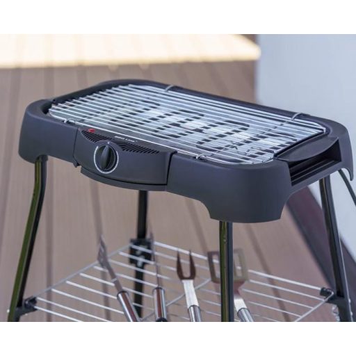 Mindjárt itt a grillszezon, ezért készüljön fel rá tökéletesen és szerezzen be egy kerti elektromos grillt. Ennek a grillnek a teljesítménye 1650-1950 W. Előnye az öntött alumínium rács, tapadásmentes felülettel , míg a méretei (SzxM) : 43x27 cm, a zsír elvezetésére szolgáló perforált rész méretei (SzxMé): 25x31 cm és a lapos rész méretei (SzxMé): 17x30 cm. A kültéri grill termosztát 5 fokozatú teljesítményszabályozással rendelkezik, előnye még a króm fűtőtest és a rozsdamentes zsírtartály. A grill egy kereszt alakú alapon áll, és van egy kiegészítő polc a tartozékok számára. Mérete (MaxSzéxMa): 89x60x60 cm. Tápellátás 220 V-on. Ha Ön azon felhasználók közé tartozik, akik előnyben részesítik a kényelmet, a sebességet, és szereti élvezni a finom grillezési élményt, akkor a MIR-E004 1950 W-os fekete elektromos grill a megfelelő választás az Ön számára.