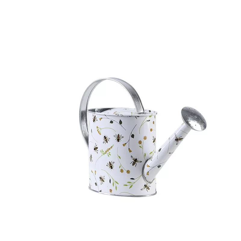 Méhecske mintás fém locsolókanna. Űrtartalma 2 liter. Ergonomikus kialakítású fogójával a virágok öntözése is kényelmes. Az elején lévő rózsafejnek köszönhetően a szórt vízsugárral kisebb vízigényű növények is jól meglocsolhatók.