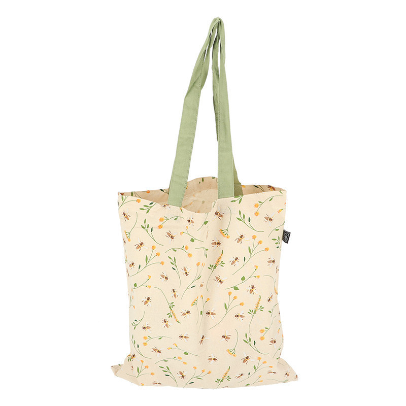 Méhecske mintás bevásárló táska pamutból. Anyagának köszönhetően a táska könnyen összehajtható, így kis helyen is elfér. Hosszabb hordozó fülét a vállra felvéve könnyebb lesz a cipekedés is. Nagyban hozzásegít a zero waste, csomagolásmentes bevásárláshoz. Strapabíró, ezért kiváló alternatívája a műanyag táskáknak, zacskóknak. Használatával elkerülhető a sok, feleslegesen felhalmozott és környezetszennyező műanyag reklámtáska.