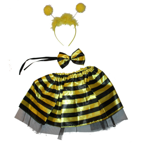Méhecske jelmez kiegészítő 3 részes, gyermekek részére. Tartalma: fejdísz, szoknya, nyakkendő.
