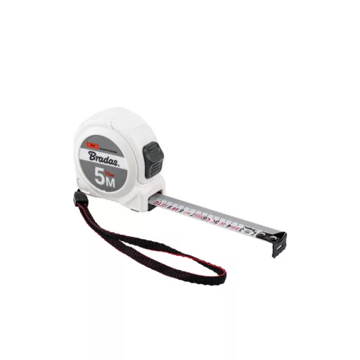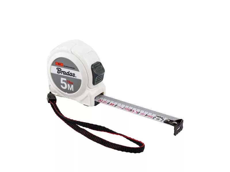 Termékjellemzők: • Hosszúság: 5 m • Szélesség: 19 mm • Szalag anyaga: szénacél • Ütéscsillapítóval felszerelt, hogy csökkentse a feltekeréskor okozott ütéseket • Világos metrikus skála • Övcsipesszel felszerelt • Pontossági osztály: LNE II