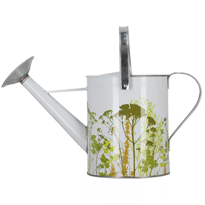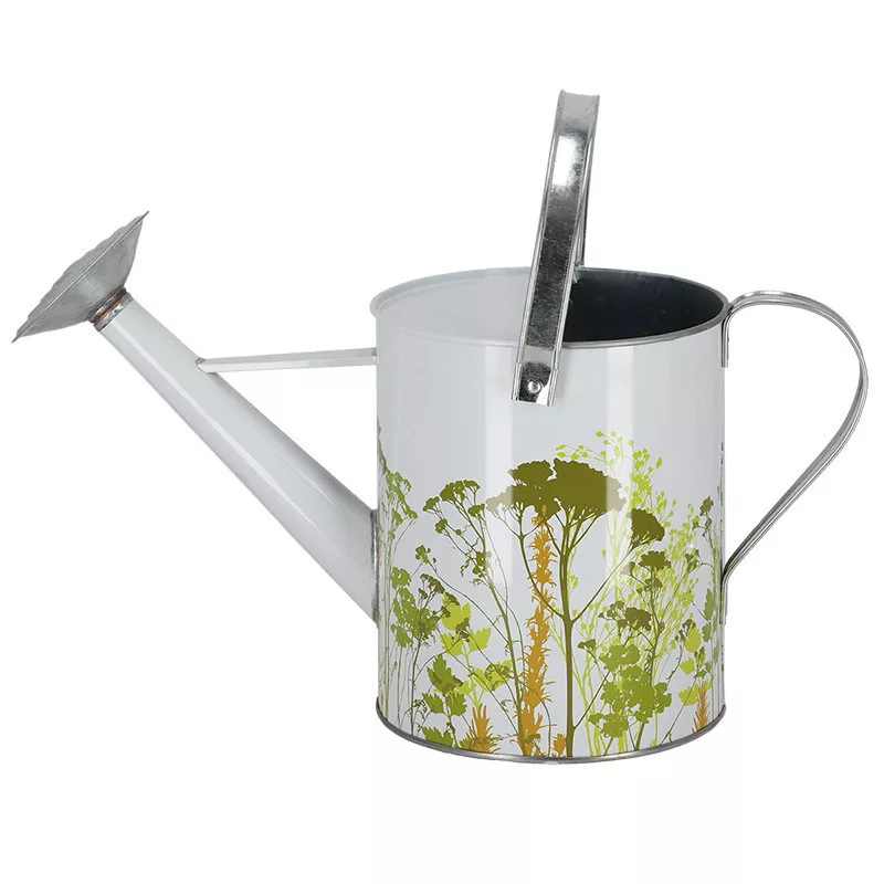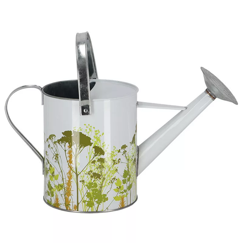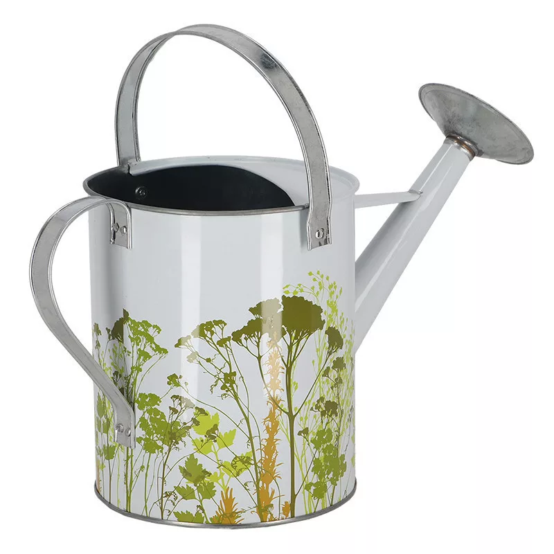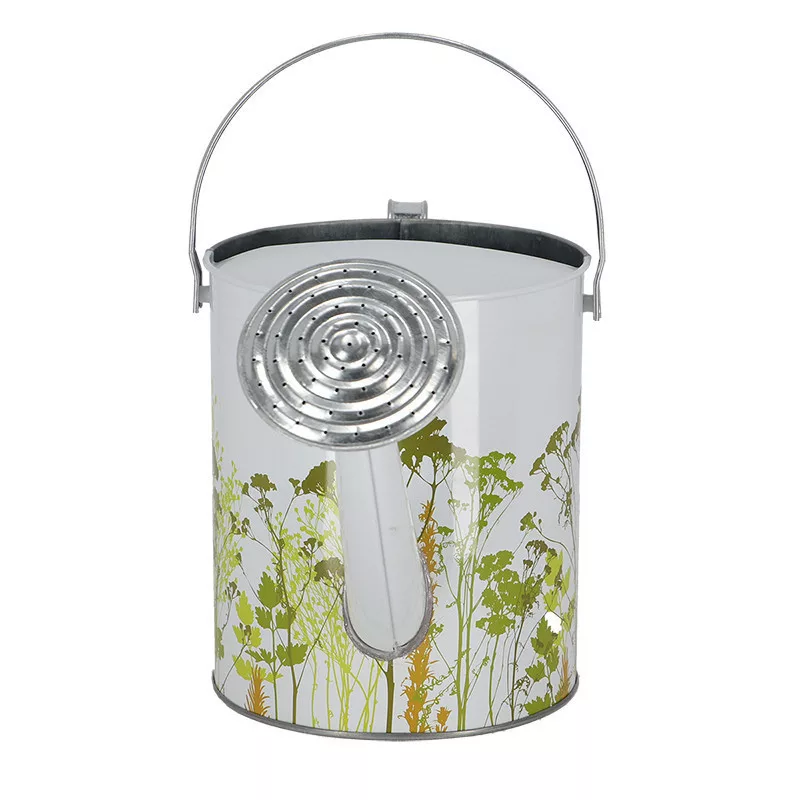 Mezei virág mintás cink locsolókanna, 5 literes. A növényeknek rendszeres öntözésre van szükségük. Az öntözőkanna hosszú, karcsú kiöntőjének köszönhetően könnyedén irányítható a víz a kívánt helyre, miközben egy kézben tartjuk. Az öntözővíz mennyisége az ergonómikus fogantyú megfogásával és előrebillentésével szabályozható, a levehető öntözőfej pedig lehetővé teszi a precíz öntözés vagy az esőzuhany közötti választást. Ezenkívül felül nagy nyílással rendelkezik, amely megkönnyíti a vízzel való feltöltést. Levehető esőztetővel és mozgatható fogantyúval rendelkezik.