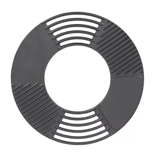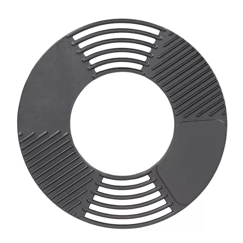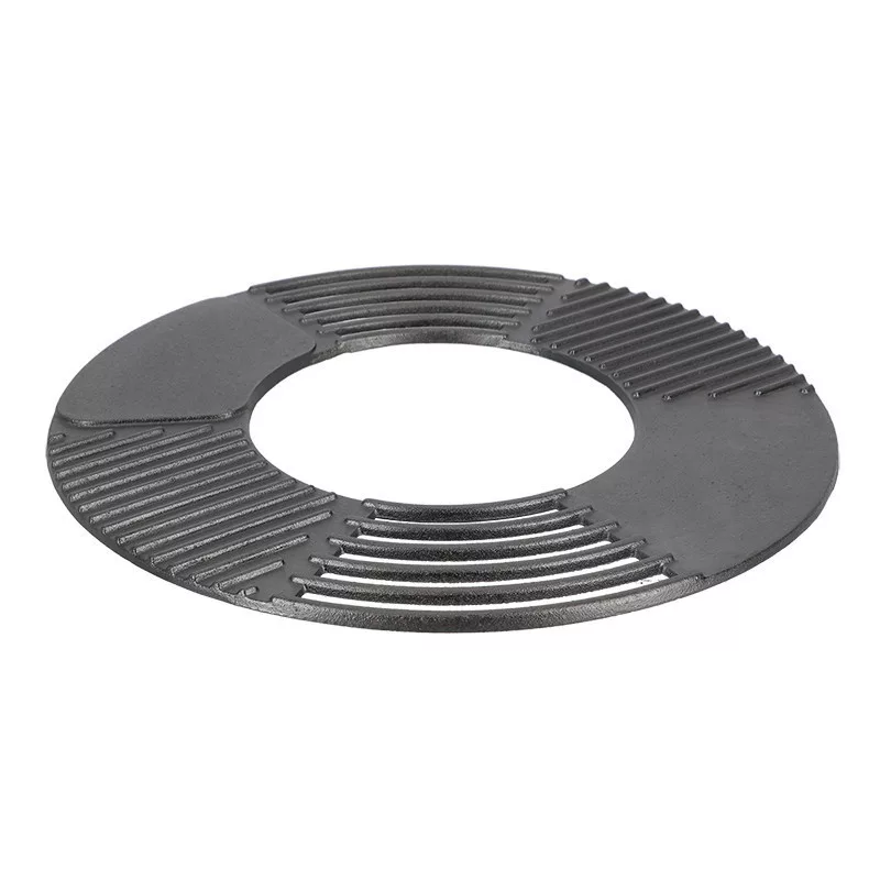 Kerek alakú, háromféle sütőfelületű öntöttvas grill rács. A grillezés és kerti sütögetés kedvelői egyszerűen és gyorsan használhatják ezt az eszközt a húsok és zöldségek grillezéséhez.