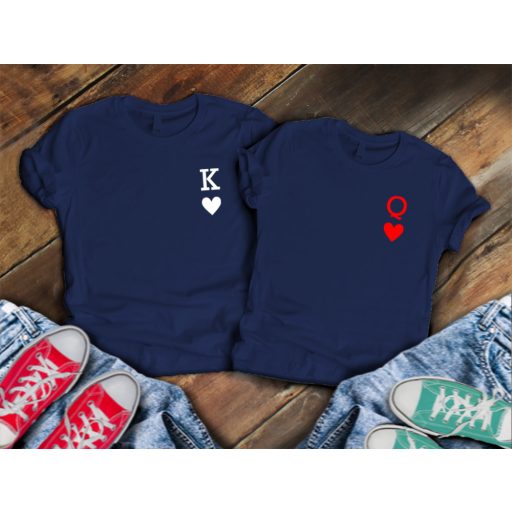 A „K és Q” sötétkék páros pólószett elegáns,mégis játékos darab szerelmespároknak. A navy alapszín és a fehér grafikatökéletes harmóniát alkot. A pólók 100% pamutból készülnek, kellemestapintásúak és jól szellőznek. A szabás kényelmes, klasszikus fazon. A mintaszívvel és koronával díszített, egyszerre jelképezi az összetartozást és aszeretetet. Könnyen mosható, nem fakul. Rendelés előtt mindig ellenőrizd amérettáblázatot. Ha valamelyik méret hiányzik, írj a webshop@sateam.hu-ra. Ajándéknak iskiváló, mert egyszerre letisztult és kifejező.