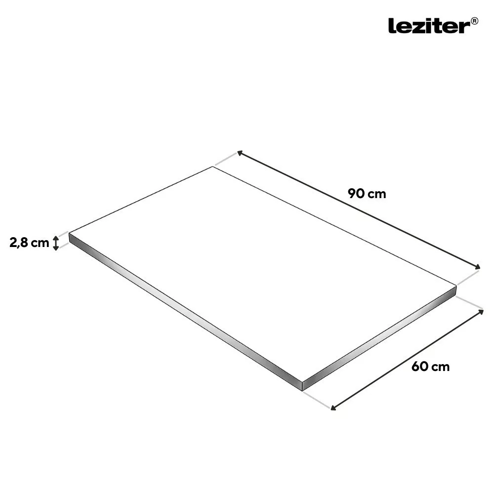 A munkalap 90 × 60 cm méretű, 28 mm vastag, ami stabil és megbízható munkafelületet nyújt a mindennapi konyhai használat során. A laminált felület strapabíró, könnyen tisztítható, a színazonos dekor élzárás pedig esztétikus megjelenést és hosszabb élettartamot biztosít.