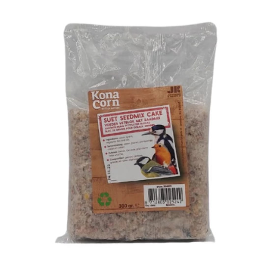Magas faggyú és növényi olaj tartalmú, magokat és gabonát tartalmazó madáreleség Lapos négyzet alakja miatt az Anna felfüggeszthető és a tapadókorongos verzióhoz ajánljuk11*9,5*3 cm