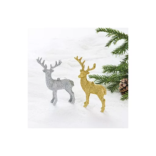 A Rénszarvas, csillogó ezüst, arany színben, akasztóval, 14 cm a karácsonyfák elegáns dísze. Finom, csillogó felülete visszaveri a fényeket, különleges ragyogást kölcsönözve az ünnepnek. Tartós, törésbiztos műanyagból készült, arany és ezüst kivitelben. A rénszarvas motívum a karácsonyi történetek kedvelt szimbóluma. Könnyen felakasztható, stabil zsinórral. Párosítható fehér, arany és bronz díszekkel. Gyertyafényben különösen látványos. Tartós, nem fakuló festéssel készült. Klasszikus és modern karácsonyi dekorációhoz is illik. Könnyen tisztítható, újra felhasználható. A rénszarvas dísz egyensúlyt teremt a csillogás és elegancia között. Finom részletei kézműves hatást keltenek. Párosítható hópelyhes és csillag motívumokkal. Tartós, karcálló felületű. Egy apró, de hangsúlyos kiegészítő, amely fényt visz a fára.