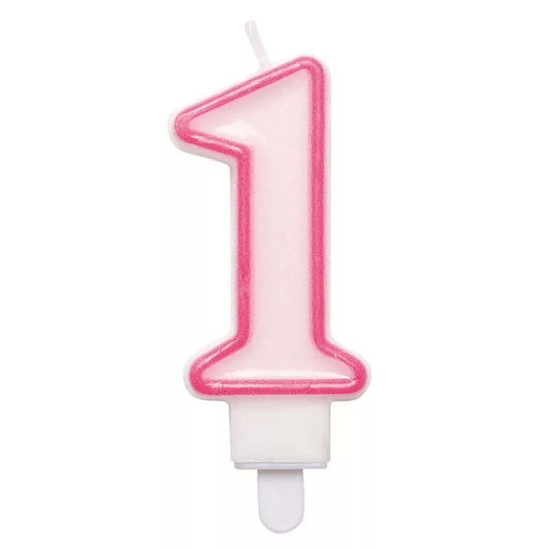 Rózsaszín Keretes 1-es Szülinapi Gyertya Tartóval