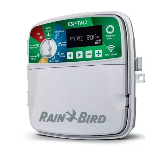 A TM2-es család legnagyobb, 12 zónás modellje. Ez a vezérlő már alkalmas nagy kiterjedésű kertek, kisebb telephelyek vagy társasházi közös kertek teljes öntözésének irányítására. A 12 körös fix kialakítás rendkívül stabil működést biztosít, minden zóna a Rain Bird-től elvárt precizitással működik.